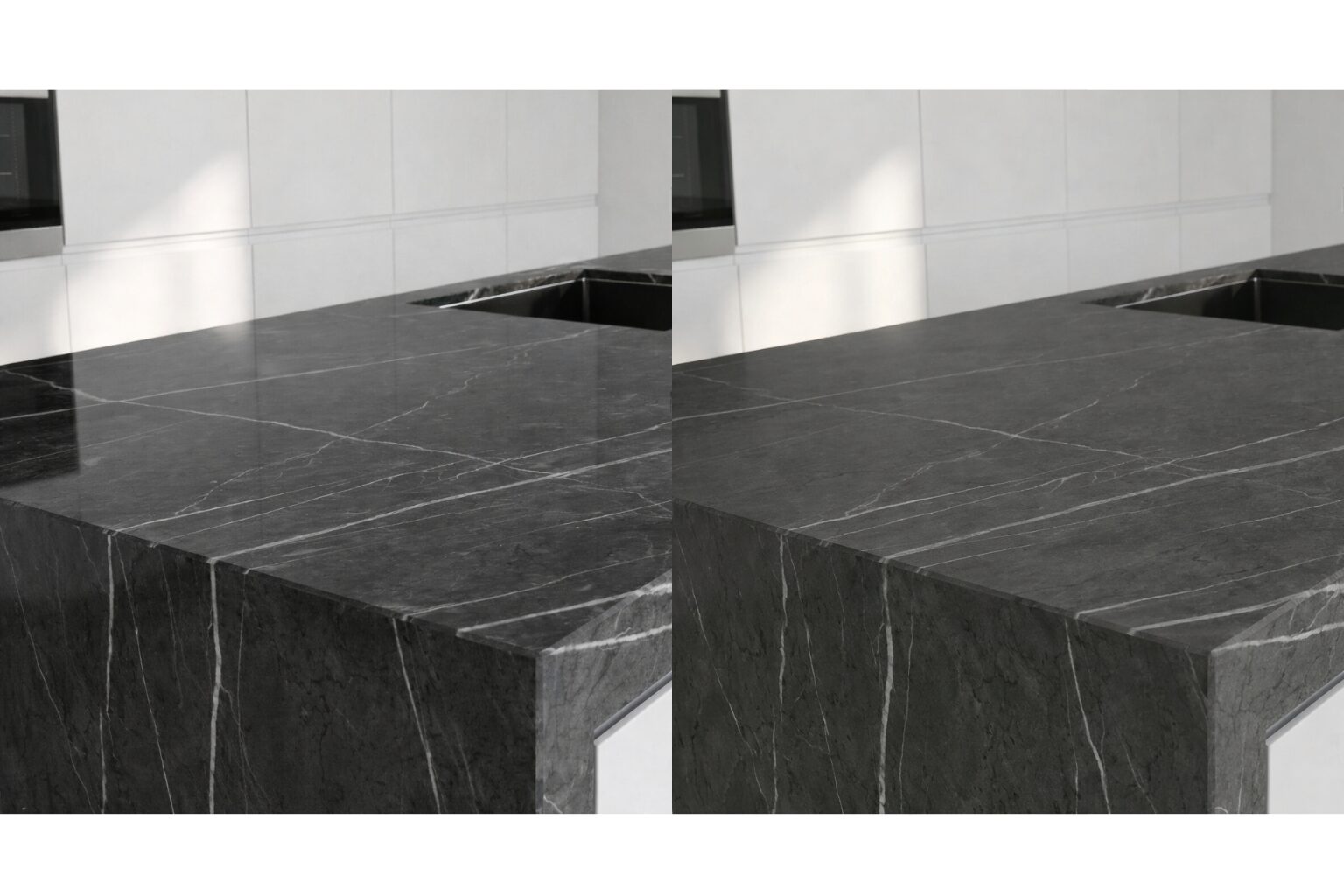 However, darker surfaces tend to highlight certain surface alterations. In the event of contact with acidic substances, the resulting mark is usually more visible compared to light marble. Scratches can also stand out more clearly, as the abraded area appears lighter against the darker background.