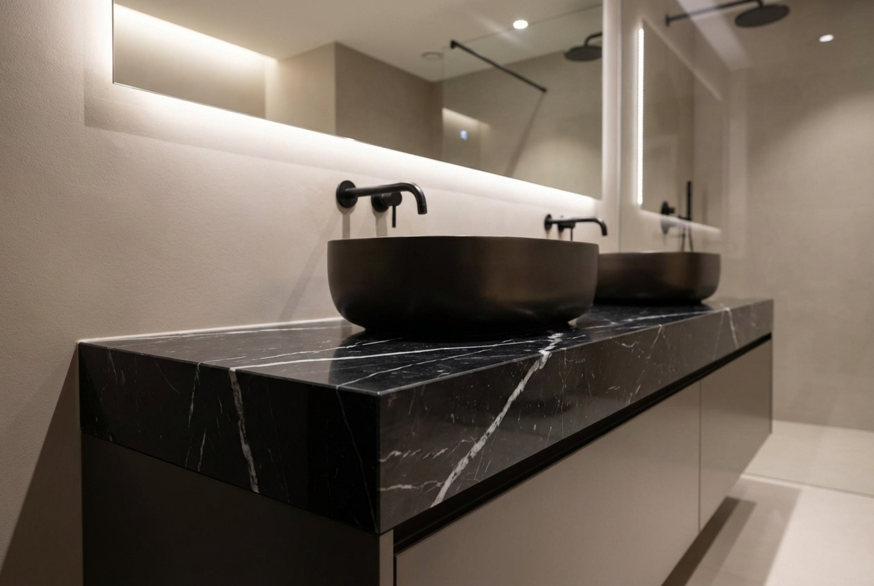 This process, typical of furnishing elements, also includes polishing or honing the first centimeters of the underside, known as the “sub-edge.” This production detail prevents accidental contact with a rough, unfinished stone surface and ensures a more refined and elegant result.